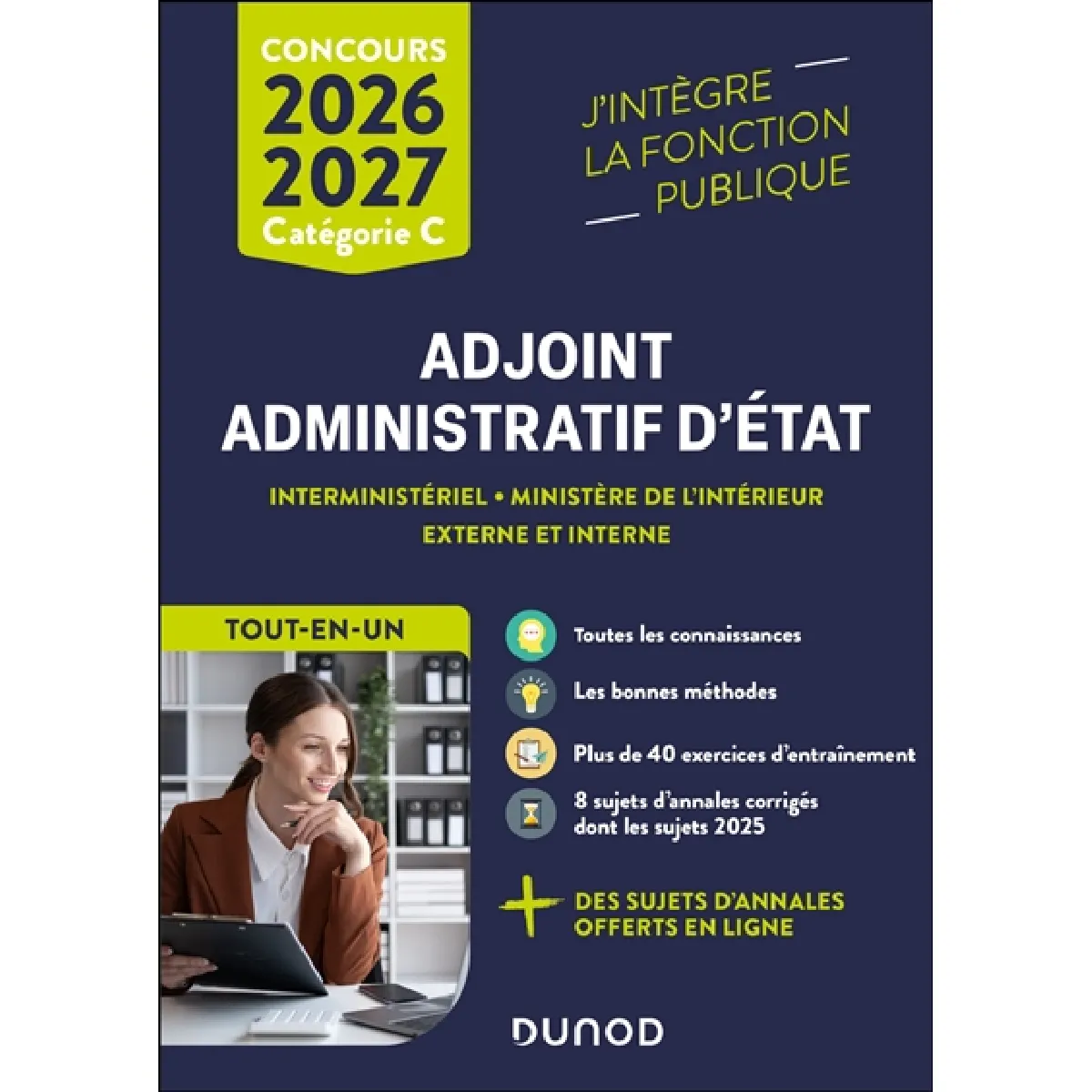 Adjoint administratif d'Etat : interministériel, Ministère de l'intérieur, externe et interne, tout-en-un : concours catégorie C, 2026-2027 |
