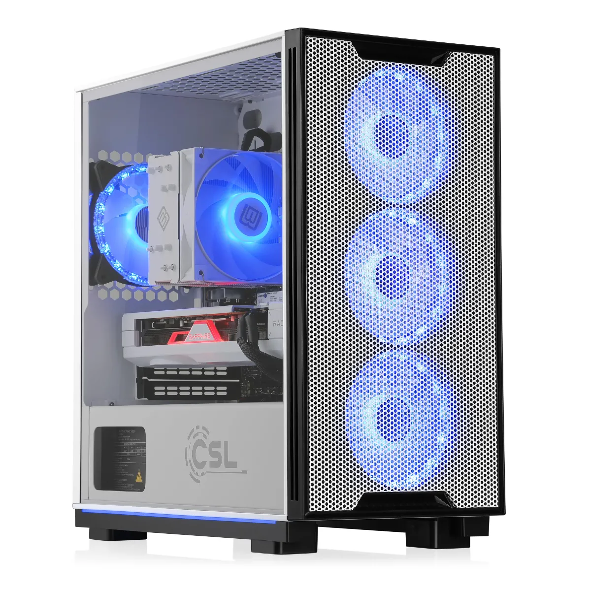 Le processeur AMD Ryzen 5 8400F garantit une puissance de calcul rapide, particulièrement appréciable avec les jeux AAA actuels et le multitâche. Pour des vitesses de réaction élevées, 32 Go de RAM DDR5 Kingston® Fury Beast sont installés dans une configuration double canal. Windows 11 est déjà préinstallé sur le SSD M.2 1000 Go de Kingston®.