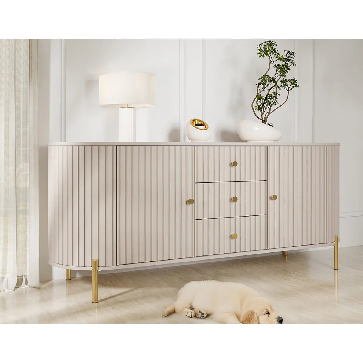 - Type : Buffet bas moderne en MDF, coloris beige