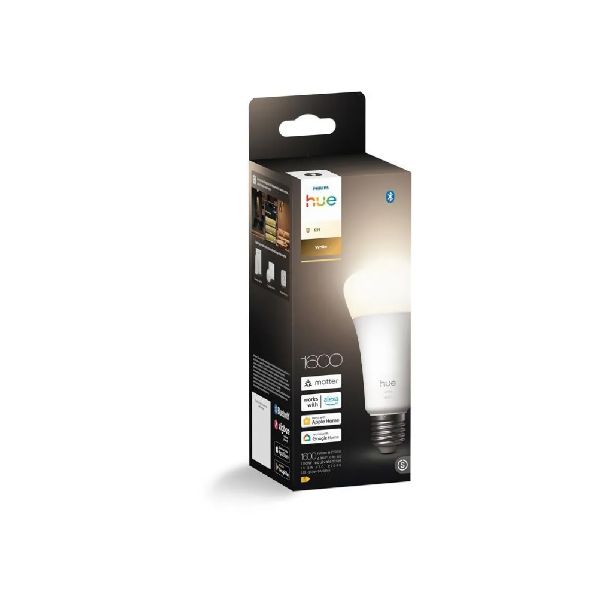 1 ampoule A21 E27 (boîte). Pour bénéficier de toutes les fonctionnalités connectées, ajoutez le Hue Bridge à votre installation.