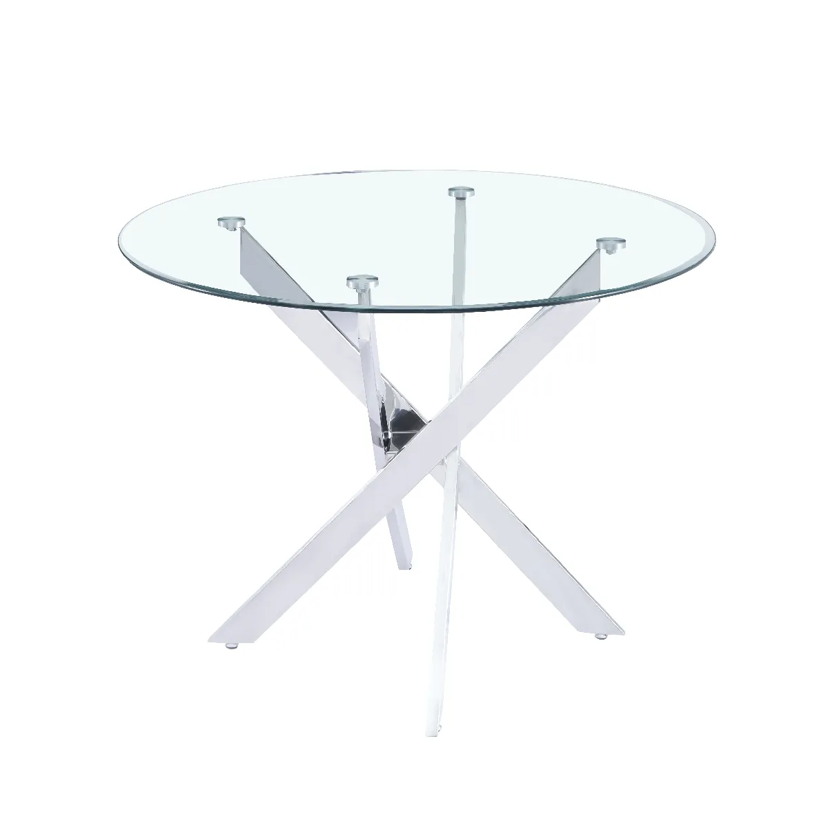 Table à manger ronde - plateau en verre trempé - piètement chromé - style moderne