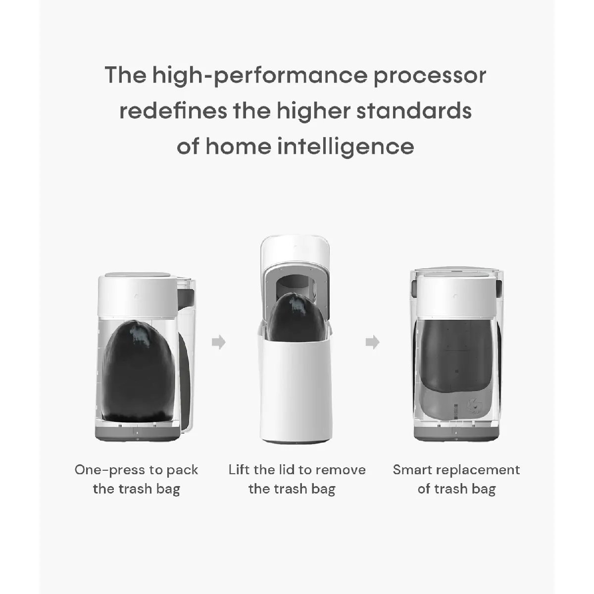 Étanchéité contre les surcharges et les contacts accidentelsSystème d'identification adaptatif avec fermeture automatique, même en cas de surcharge. La poubelle de salle de bain détecte automatiquement l'emplacement des déchets excédentaires, s'adapte à la hauteur de la poubelle et déploie le sac pour le fermer. Les poubelles avec couvercle fonctionnent également en cas d'obstacles. Elles identifient automatiquement les obstacles au-dessus du couvercle et retardent intelligemment toute ouverture ultérieure.