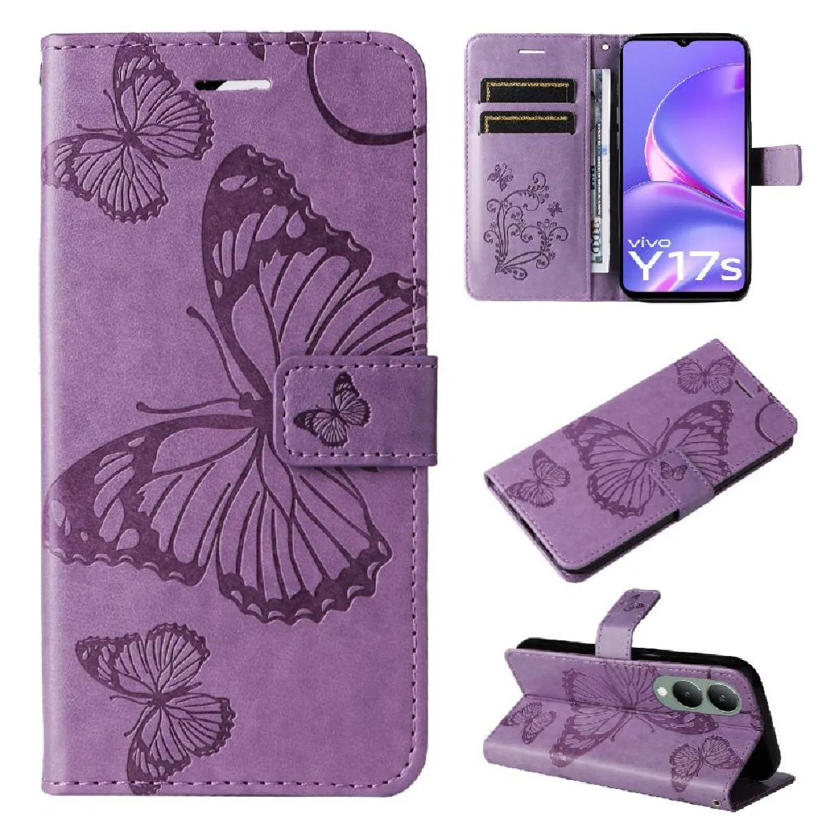Étui Pour VIVO Y17S 4G Couverture antichoc Couverture magnétique Cuir PU Flip Kickband Avec support de fente pour carte GANGXUN Violet