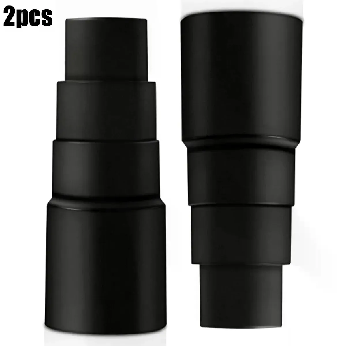 La plage de raccords couvre plusieurs diamètres usuels : environ 26,5 mm pour tuyaux 26 mm, 32,45 mm pour tuyaux 32 mm, connexion 34,75 mm côté large pour tuyaux 35 mm, et 40,88 mm côté large pour tuyaux 38 mm. Ces dimensions permettent d'adapter le tuyau DN 35 aux embouts concernés avec un ajustement fiable et durable. Le lot comprend 2 adaptateurs pour assurer un remplacement immédiat ou un usage sur plusieurs postes. La finition noire s'intègre discrètement aux équipements existants et aide à identifier rapidement les raccords lors des changements d'accessoires.