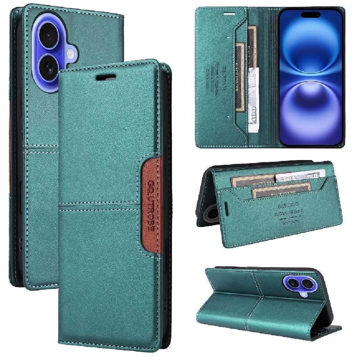 Flip Étui Pour iphone 17 Antichoc Portefeuille Blocage RFID Couverture rabotant GANGXUN Vert |