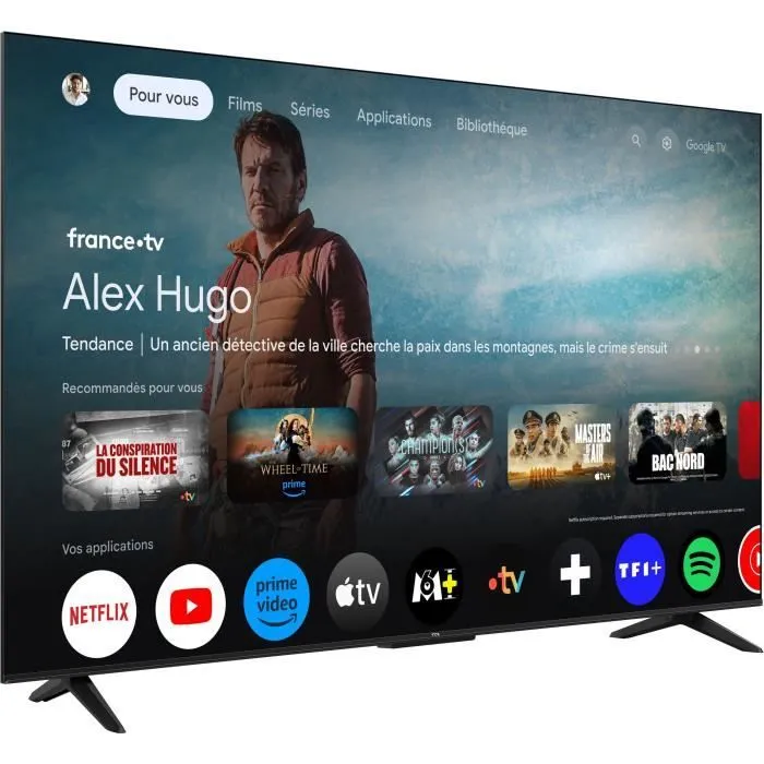 Avec Android TV, l'accès aux applications de streaming, de musique et de vidéo est immédiat. La connectivité WiFi et Bluetooth facilite l'association d'accessoires et de services, tandis que Google Assistant permet des recherches vocales et la gestion de contenus. L'interface est conçue pour une navigation claire entre chaînes, services et entrées HDMI. La TV prend en charge Dolby Atmos pour des pistes compatibles, améliorant la spatialisation par rapport à une diffusion stéréo classique. La classe énergétique G et l'indice de réparabilité 7 sont indiqués pour une lecture objective des caractéristiques.