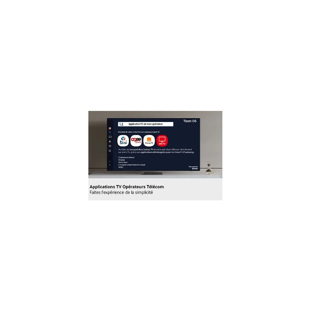 - Smart TV Tizen, Bixby, AirPlay, SmartThings, Multi View (jusqu'à 2 écrans)