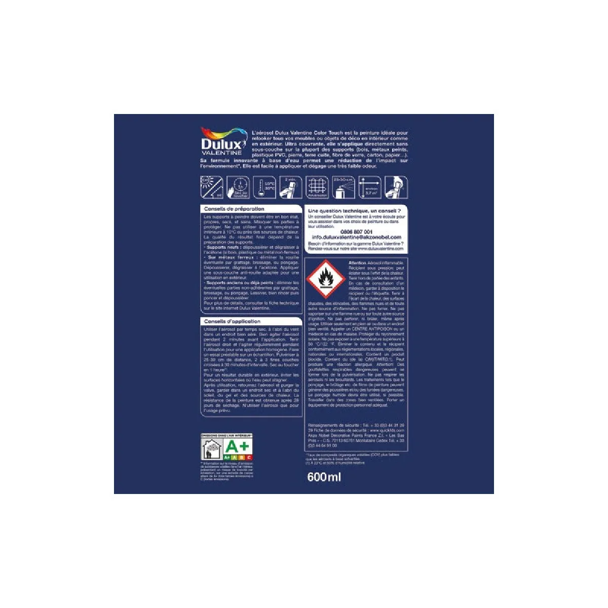 Conçue pour une utilisation en intérieur comme en extérieur, cette peinture aérosol est adaptée à une grande variété de supports et permet de relooker facilement meubles, décorations, cadres et petits objets.