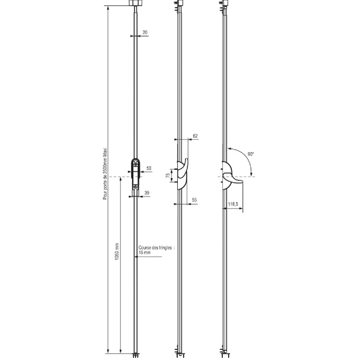 - Voyant de l'état d'engagement des pênes dans les gâches inséré dans la partie haute de la tringle (possibilité de 2 voyants : un en haut et un en bas).