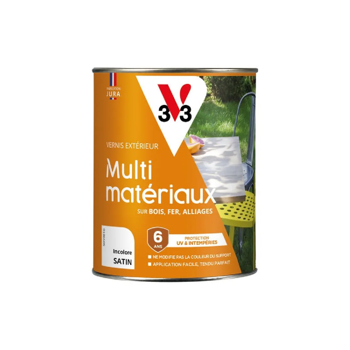 Ce vernis de protection V33 offre une résistance durable aux chocs, intempéries et rayons UV, garantissant une protection prolongée des portes, mobiliers de jardin et objets chinés sans altérer leur aspect d'origine.