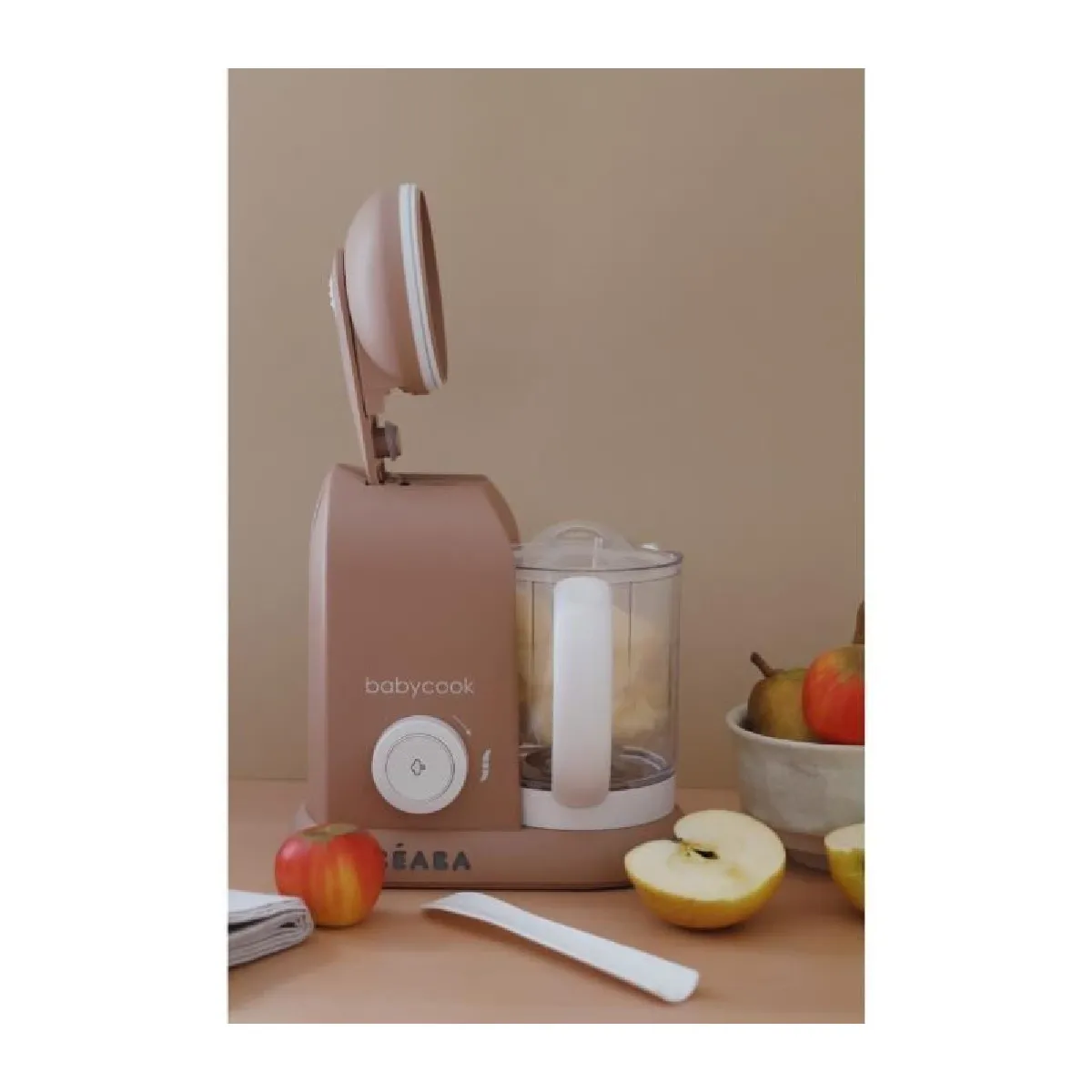 Avec sa capacité de 1100 ml, il est possible de préparer des quantités plus importantes en un tour de main. Cette marge offre la flexibilité de réaliser des purées et compotes pour plusieurs jours, ou de varier les recettes au sein d'une même session. Le mixage des aliments sur mesure aide à obtenir une texture adaptée à l'âge de l'enfant, qu'il s'agisse d'un début de diversification ou d'une alimentation plus épaisse. L'unique commande regroupe les fonctions essentielles, pour une prise en main immédiate.