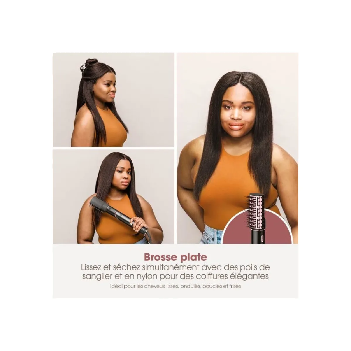 - Système : multistyler avec accessoires pour brushing, boucles, volume et lissage