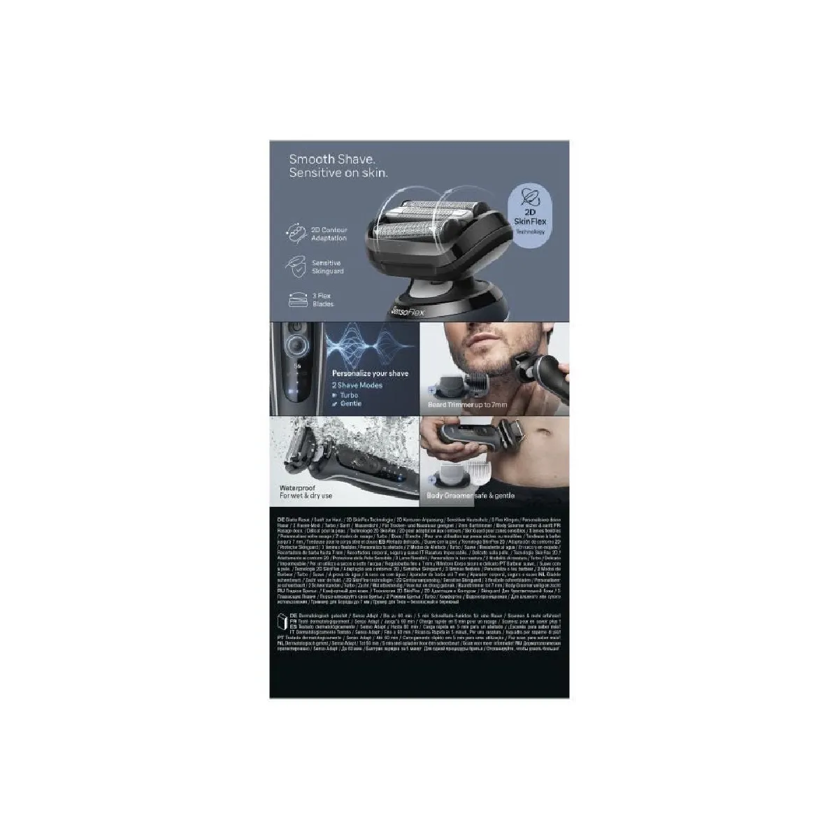 La tête 2D flexible suit les courbes du visage afin de maintenir un contact constant et limiter la pression sur la peau. Associée à la technologie SensoAdapt qui ajuste automatiquement la puissance, elle contribue à un rasage précis et confortable sur poils courts ou plus longs. La batterie LiIon offre jusqu'à 60 minutes d'autonomie, et une charge rapide de 5 minutes suffit pour un rasage d'appoint. Étanche, l'appareil s'utilise à sec ou sur peau humide, y compris sous la douche, pour intégrer facilement le rasage à la routine du matin.