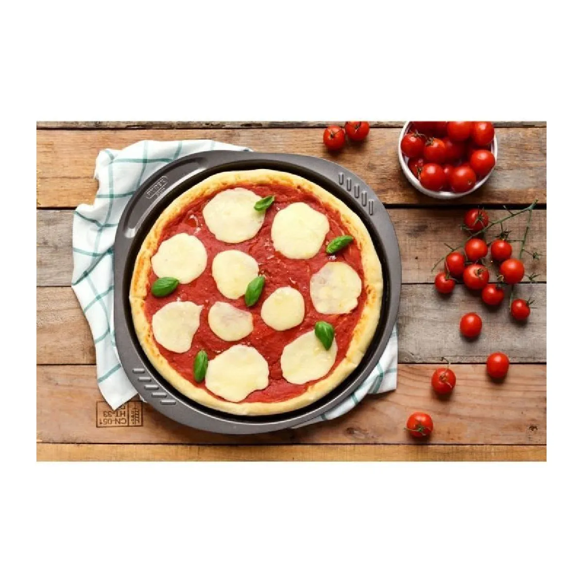 - Fond perforé favorisant une pâte plus croustillante et une évacuation de l'humidité