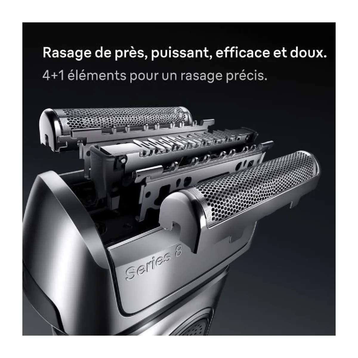La batterie LiIon offre jusqu'à 60 minutes d'autonomie et une charge rapide 5 minutes pour un rasage ponctuel. Une recharge complète alimente plusieurs sessions selon la fréquence d'utilisation. La conception 100% étanche pour une utilisation sur peau sèche ou mouillée simplifie le nettoyage : le passage sous l'eau retire les résidus de poils et de mousse. La grille et les éléments synchronisés maintiennent leur performance avec un entretien régulier et le remplacement des têtes de rechange compatibles Series 8 lorsque nécessaire.