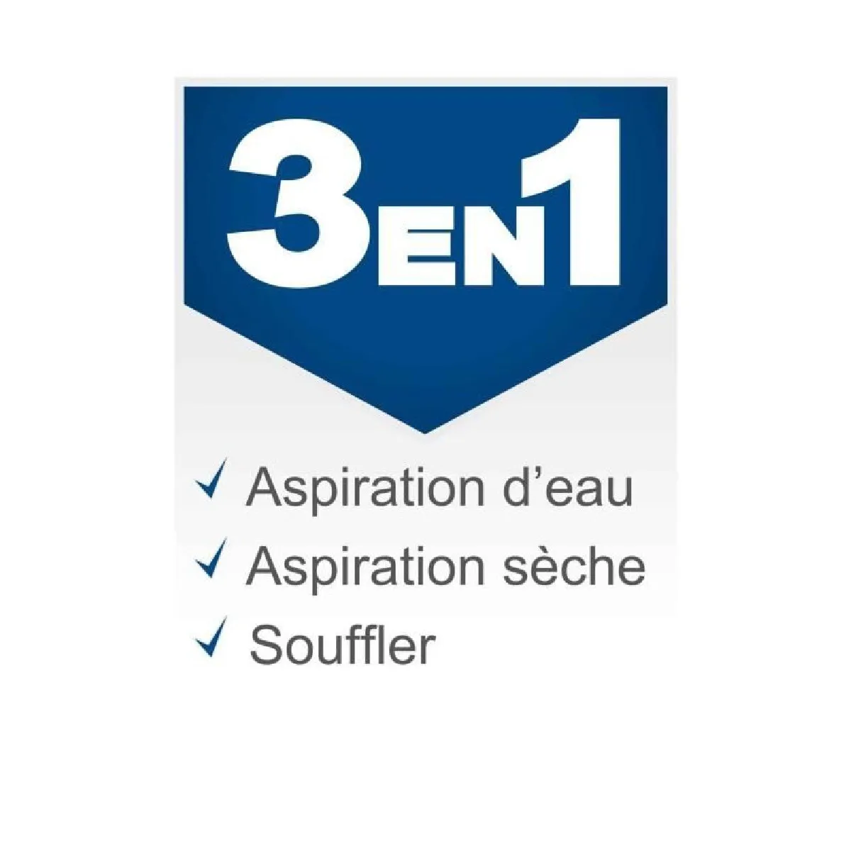 Les accessoires fournis couvrent les besoins courants : tuyau d'aspiration 3 m, tube télescopique en aluminium, différentes buses et filtres pour passer rapidement d'un sol humide à un recoin étroit. En usage continu, l'entretien se limite au contrôle du sac et au dépoussiérage des filtres. Pour les liquides, la vidange par tuyau dédié limite les manipulations et réduit les risques de débordement. L'ensemble vise une utilisation rationnelle, avec une aspiration solide/liquide et soufflage réunis dans un seul appareil.