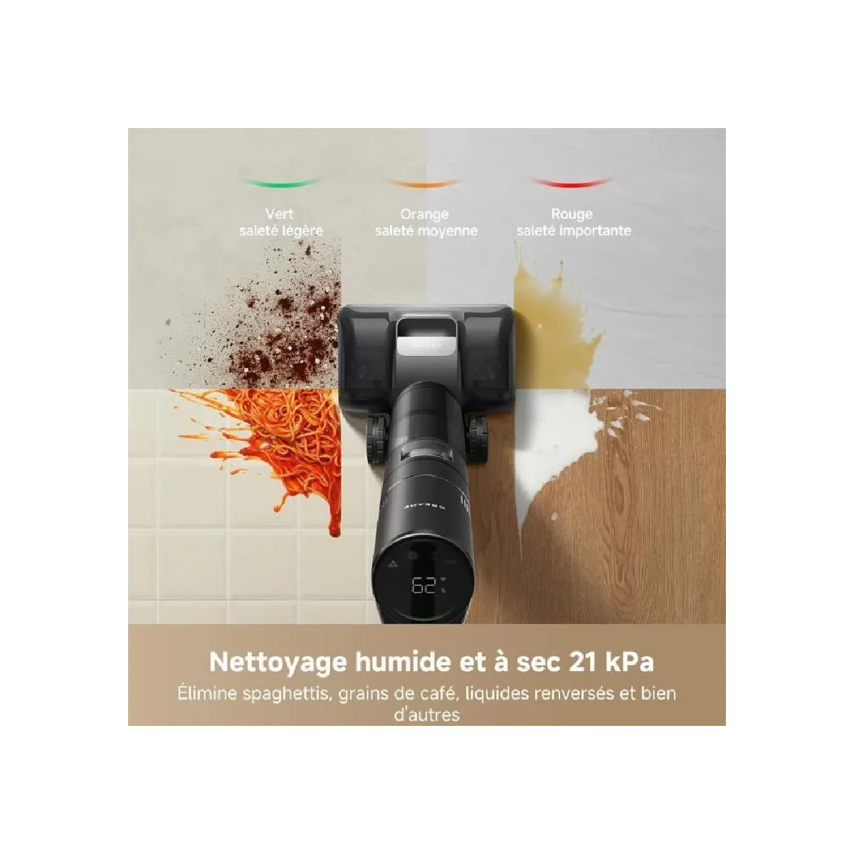 Aspirateur balai lavant sans fil - IA DescendReach - 21?000 Pa - séchage 90°C - brosse autonettoyante - filtre HEPA - station au sol - 76 dB