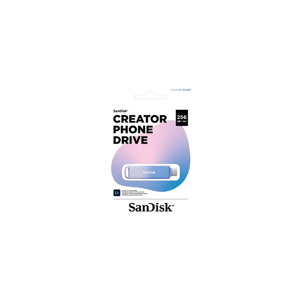 Caractéristiques complémentaires : Pour les créateurs qui travaillent sur plusieurs appareils, la clé USB SanDisk Creator Phone Drive, qui fait partie de la gamme SanDisk Creator, est votre compagnon compact pour un stockage fiable et rapide et une créativité accrue. Passez sans effort d'un smartphone à une tablette ou un ordinateur grâce aux connecteurs USB Type-C et Lightning. Offrant jusqu'à 256 Go* de stockage, elle est conçue pour accompagner votre flux de production créatif avec une qualité sans compromis. Que vous gériez des photos haute résolution, de nombreux fichiers vidéo ou des documents importants, ce disque vous assure de ne pas manquer d'espace. De plus, votre achat vous donne droit à trois mois d'essai gratuit d'Adobe Lightroom*** pour améliorer votre créativité, en vous permettant de retoucher et d'organiser vos photos à l'aide d'outils de qualité professionnelle..