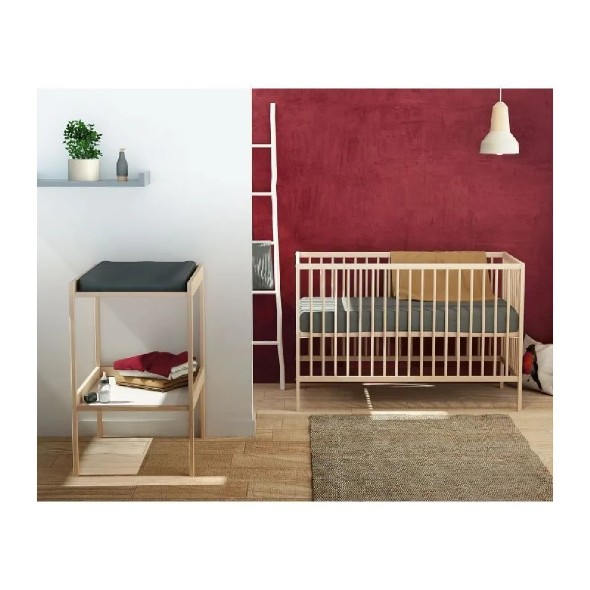 L'accès au couchage est simplifié grâce à un sommier à lattes réglable sur 3 hauteurs, pensé pour accompagner les premières étapes de l'enfant. La structure en hêtre massif en finition blanche apporte une base stable et homogène, adaptée aux usages quotidiens. Les dimensions de couchage 60 x 120 cm acceptent les matelas standards pour bébé, afin de faciliter l'équipement de la chambre. Le design sobre de style scandinave avec lignes épurées s'intègre aisément dans différents aménagements sans surcharger l'espace, tout en offrant un environnement calme. Le matelas n'est pas inclus, ce qui permet de choisir une solution adaptée aux préférences de fermeté.