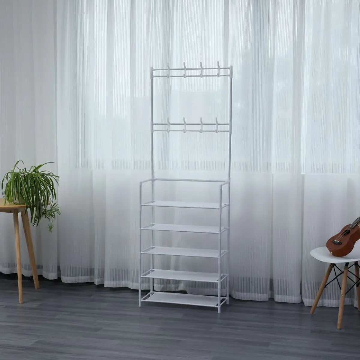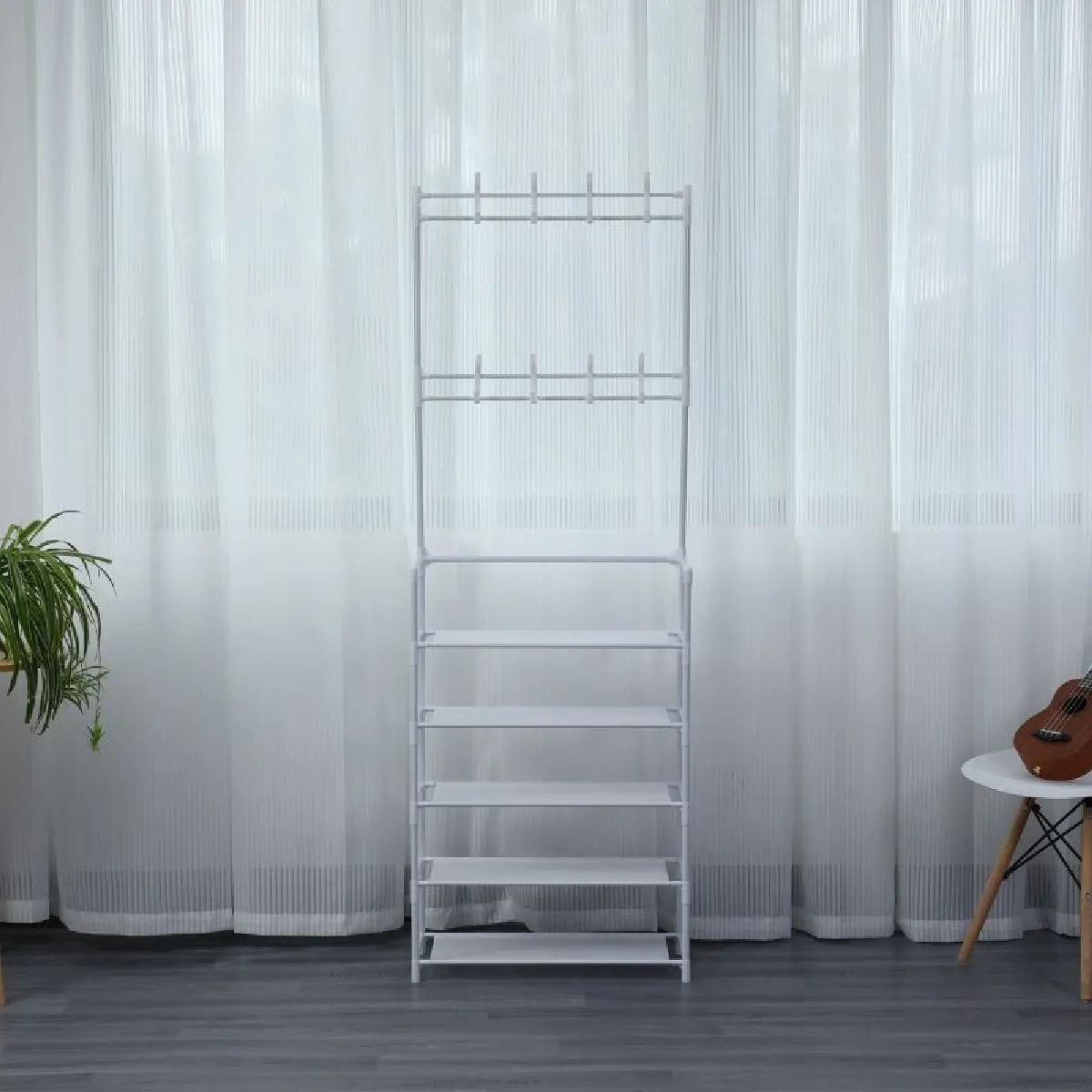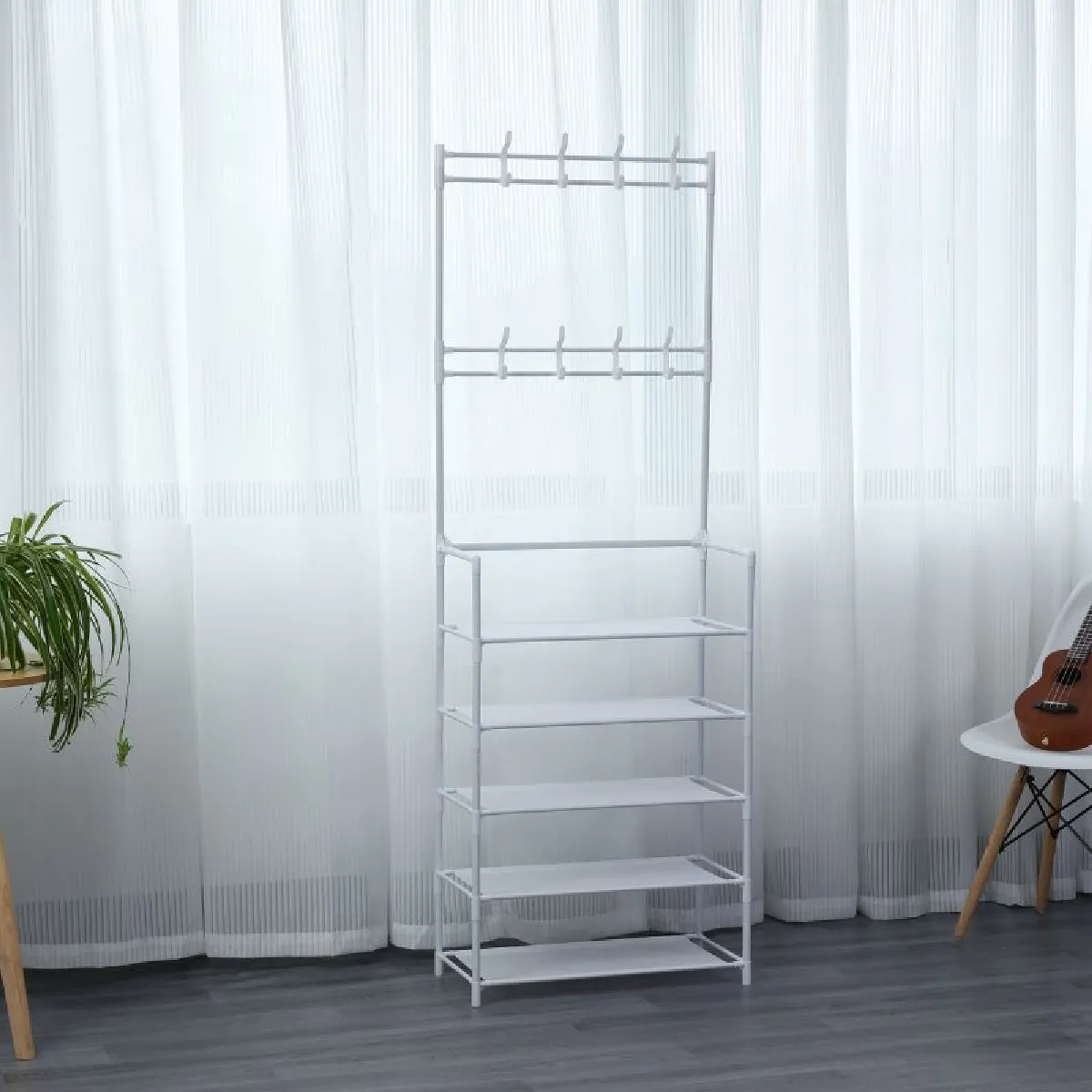 - Fonctionnalité : Combine le porte-manteau et le porte-chaussures pour une organisation efficace.