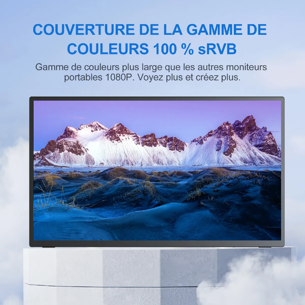 - Gamme de couleurs 100 % sRGB, luminosité 300 cd/m²