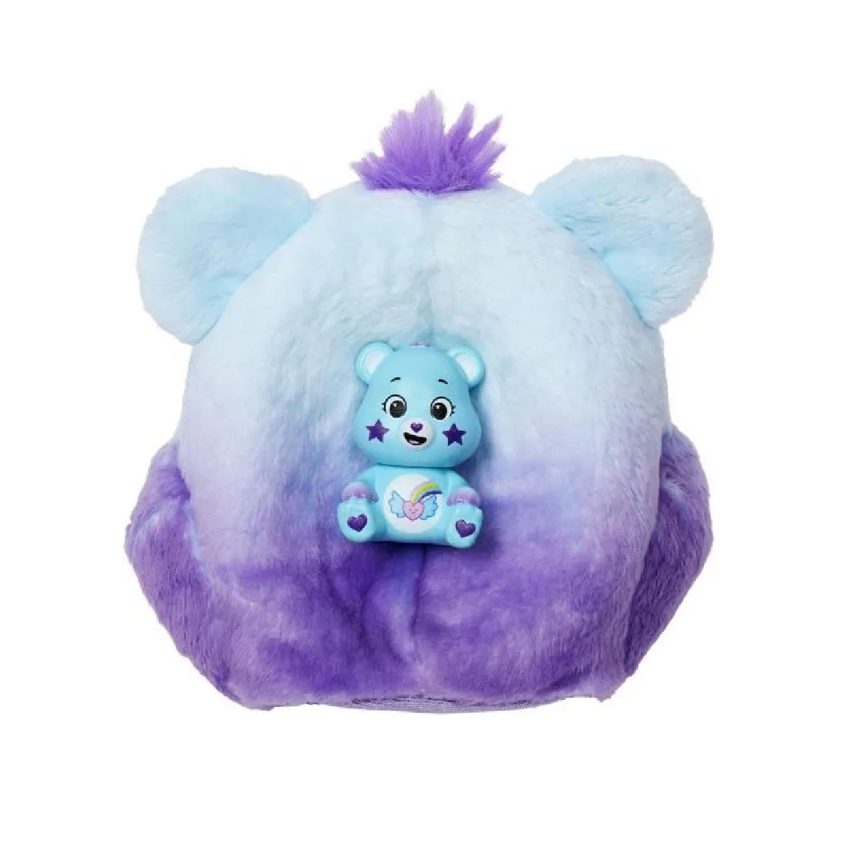 L'ouverture révèle plusieurs éléments cachés pour diversifier les histoires et prolonger l'intérêt du jeu. La poupée est articulée pour permettre des poses variées et stables, adaptée aux scènes quotidiennes comme aux mises en scène créatives. Un effet de changement de couleur ajoute une dimension interactive et visuelle, facile à activer pendant les moments de jeu. Le déguisement tout doux inspiré des Bisounours avec un mini ourson introduit des scénarios affectifs et doux, tout en restant simple à manipuler par de jeunes enfants.