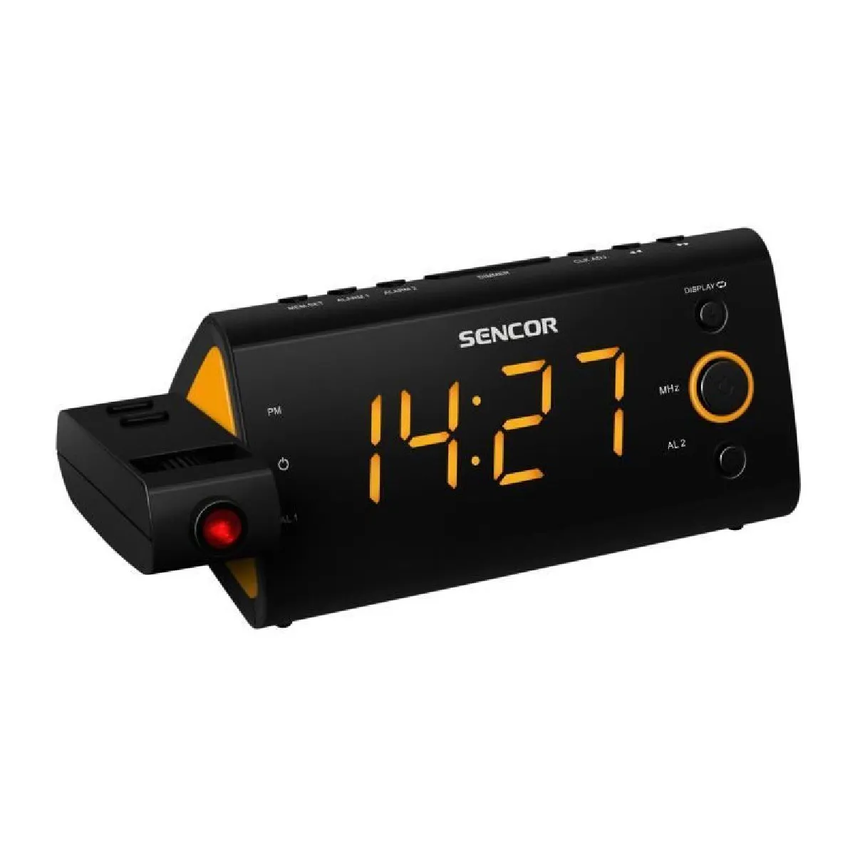 Radio-réveil digital - projection de l'heure - tuner FM - écran LED orange