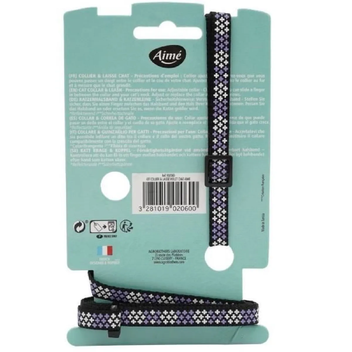 Ce kit collier et laisse pour chat comprend un collier en nylon violet a motifs réfléchissants, ajustable de 18 a 28 cm. Il est équipé d'une boucle de sécurité anti-étranglement et d'un grelot en métal pour repérer votre animal facilement. Confortable et pratique, il est facile a entretenir.