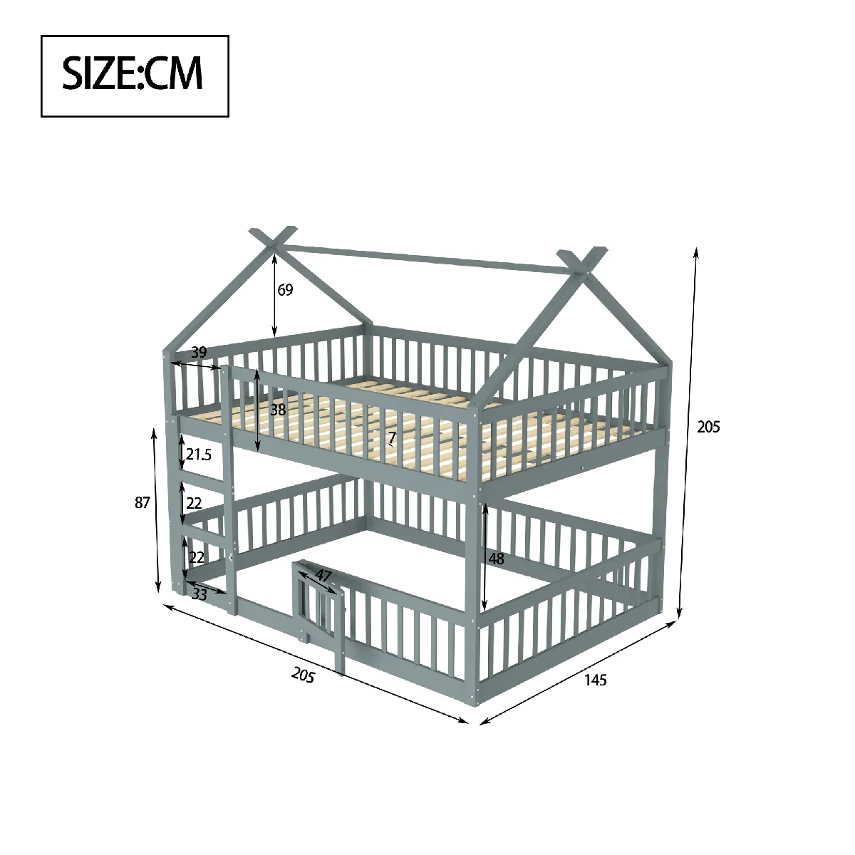 OKWISH Lit superposé 140x200 cm - Lit cabane enfant - Gris |