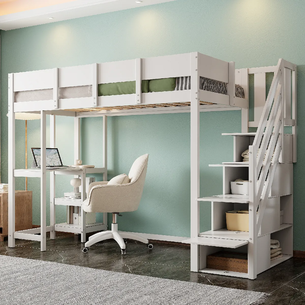 OKWISH Lit mezzanine 90x200 cm Lit escalier - Blanc