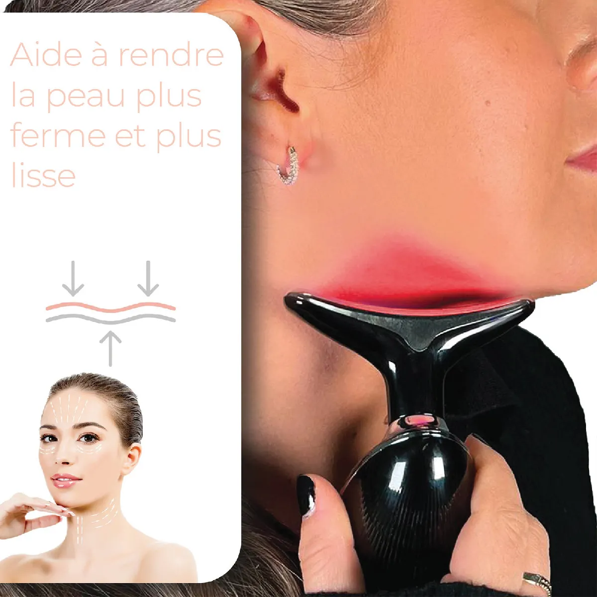 Appareil de soin du visage et du cou - chaleur, vibrations et lumière LED - rechargeable USB - autonomie 60 min