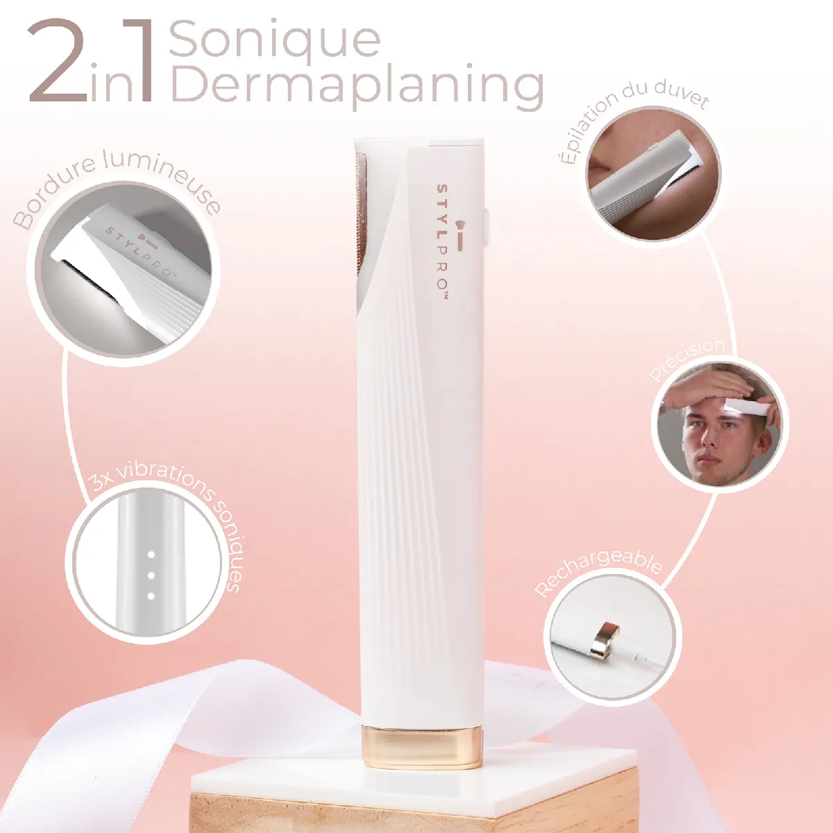 Dermaplane sonique lumineux 2-en-1 pour une peau lisse