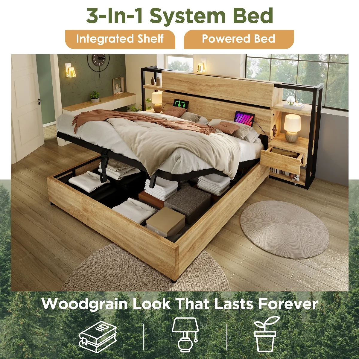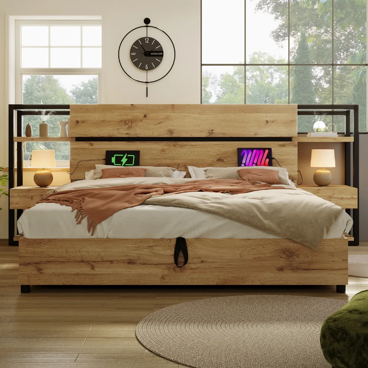 - Contenu de lemballage : Cadre de lit + Station de charge + Structure de table de nuit
