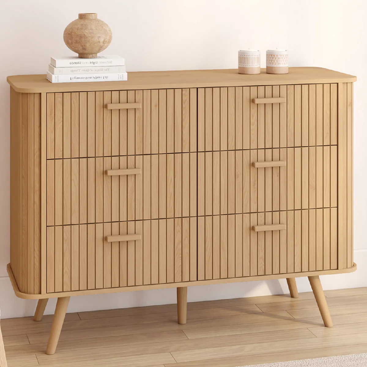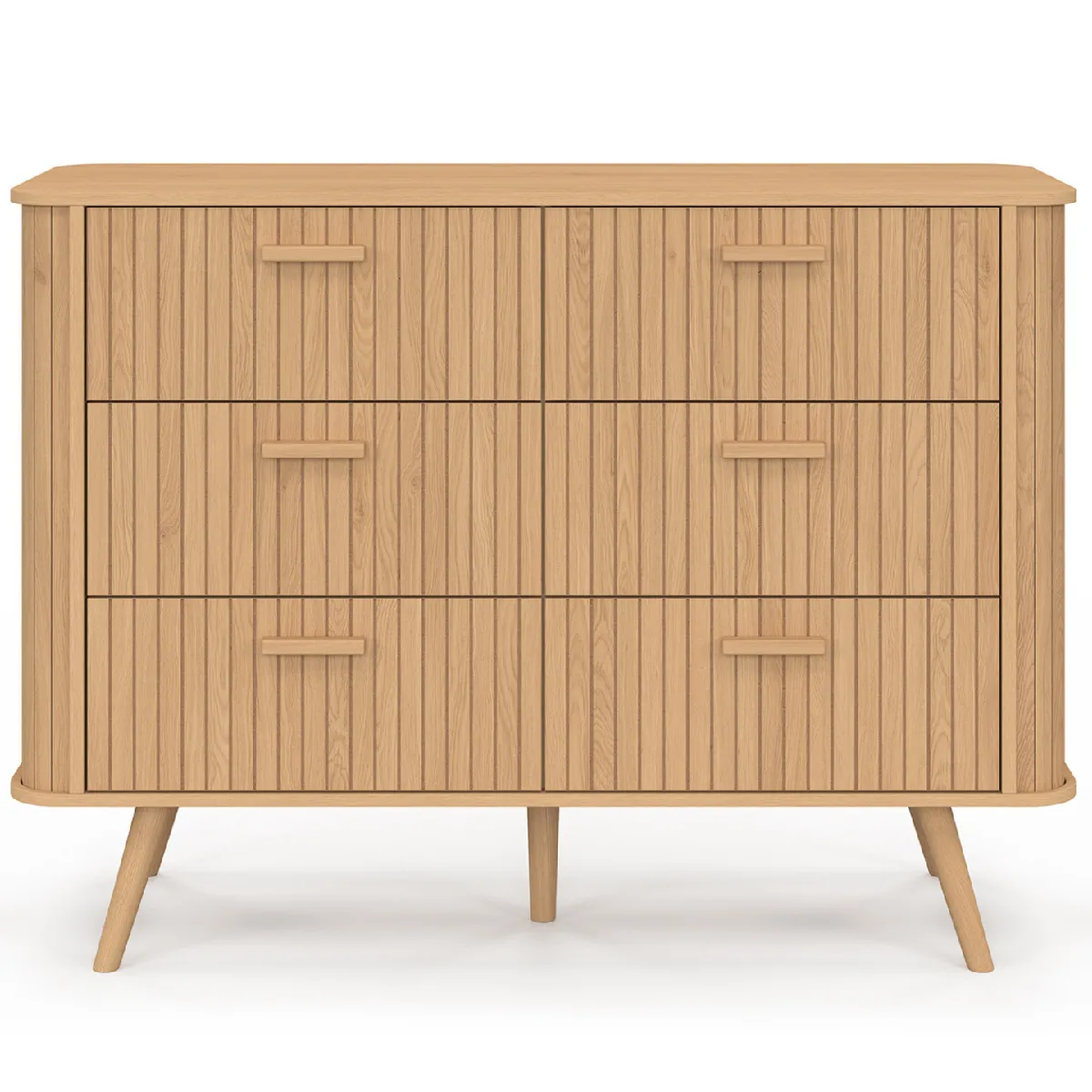 Commode 6 tiroirs ROMIE 110 cm lattes tasseau bois coloris chêne