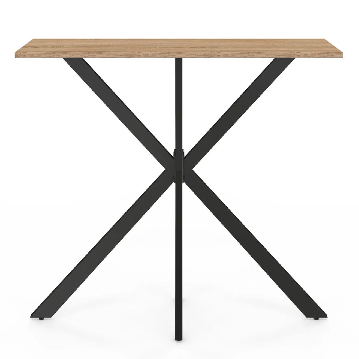 Habillez votre entrée à prix mini avec notre console pied araignée ALIX ! Plus besoin de choisir entre fonctionnalité et style, cette console coche toutes les cases et donnera du caractère à votre intérieur en un tour de main ! Créez une ambiance tendance dans votre entrée, chambre ou salon grâce aux lignes design de cette jolie console. Les dimensions astucieuses du plateau vous permettent d'y disposer tablette, lampe d'appoint, et de mettre en valeur déco et petite plante verte. Elle peut également vous servir de bureau d'appoint dans une pièce palière !Ses formes travaillées donneront un esprit chic et élégant à ce meuble d'entrée tout en lui assurant stabilité et robustesse avec sa structure en panneaux de particules et métal. Sublimez dès maintenant votre intérieur avec la console ALIX bicolore et son pied araignée qui apporteront une réelle valeur ajoutée à votre entrée ou à votre séjour en toute simplicité !Dimensions de la console ALIX pied araignéeDimensions globales : Longueur 90 cm x largeur 30 cm x Hauteur 80 cmDimensions des pieds : L. 98,5 x l. 29 cmMatériaux : plateau en panneaux de particules et pieds en métal Coloris : bois et noirÀ monter soi-mêmeRetrouvez l'ensemble de notre collection industrielle sur notre boutique en ligne !