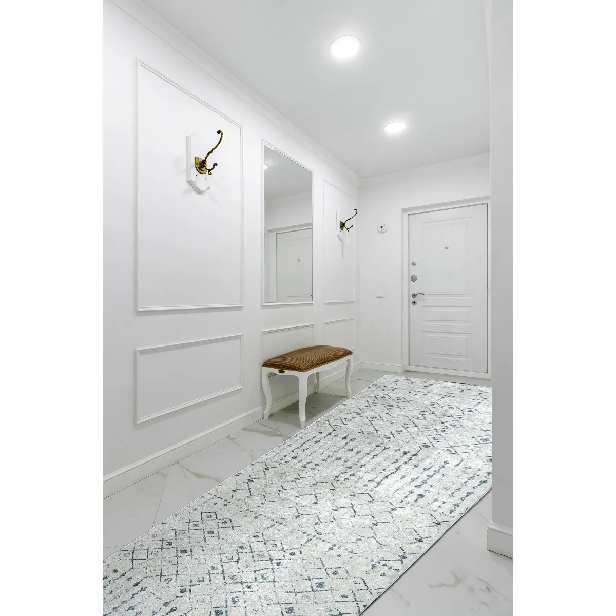 Tapis de course LOTUS : confort et sécurité au quotidien Les tapis de course ne sont pas seulement un complément pratique pour les entrées, les cuisines ou les couloirs, mais aussi un élément qui influence la perception de l'ensemble de l'intérieur. C'est pourquoi la collection de tapis de course LOTUS associe un design tendance à la fonctionnalité dont vous avez besoin au quotidien. Les tapis de course LOTUS ont été créés pour les personnes qui aiment l'esthétique, la sécurité et la facilité d'entretien. Grâce à leur face inférieure antidérapante, les tapis de course LOTUS garantissent stabilité et sécurité, même sur des surfaces glissantes ou mouillées. C'est le choix idéal pour les maisons avec des enfants, des personnes âgées ou des animaux domestiques. Grâce à leur construction légère et flexible, ils s'adaptent parfaitement aux surfaces et ne se déplacent pas lors de la marche. Les tapis de cette collection sont faciles à entretenir : ils peuvent être lavés en machine jusqu'à 30°C et il suffit de passer l'aspirateur tous les jours. En effet, le poil ras limite l'entrée de la poussière et de la saleté, ce qui sera particulièrement apprécié par les personnes allergiques. Les fibres synthétiques utilisées dans la production sont sans danger pour la santé et respectueuses de l'environnement, comme le confirme le certificat OEKO-TEX. Les revêtements de sol LOTUS conviennent également parfaitement aux pièces équipées d'un chauffage par le sol, offrant un confort thermique et un plaisir d'utilisation. Caractéristiques de la collection LOTUS: Ils conviennent à divers environnements : cuisine, couloir, entrée ou salle de bains Lavables en machine (jusqu'à 30°C) - entretien confortable et sans effort Le dessous antidérapant augmente la sécurité d'utilisation Le poil ras réduit l'accumulation de poussière et facilite le nettoyage Fibre polyester sans danger pour les enfants, les personnes allergiques et l'environnement - certifiée par OEKO-TEX Compatible avec le chauffage par le sol. Fonctionnels, sûrs et remarquables. Quel espace de votre maison sera équipé de tapis roulants de la collection LOTUS ?