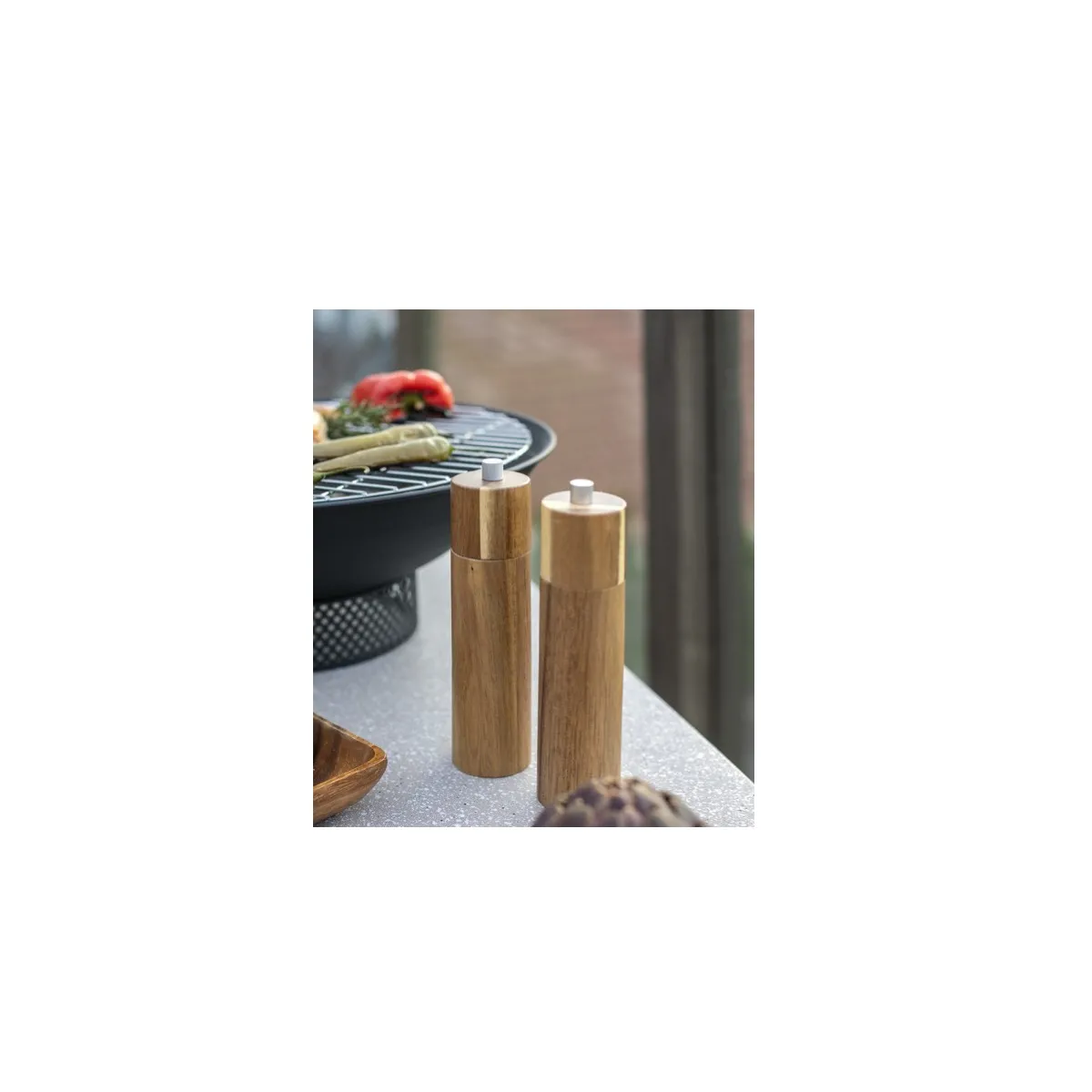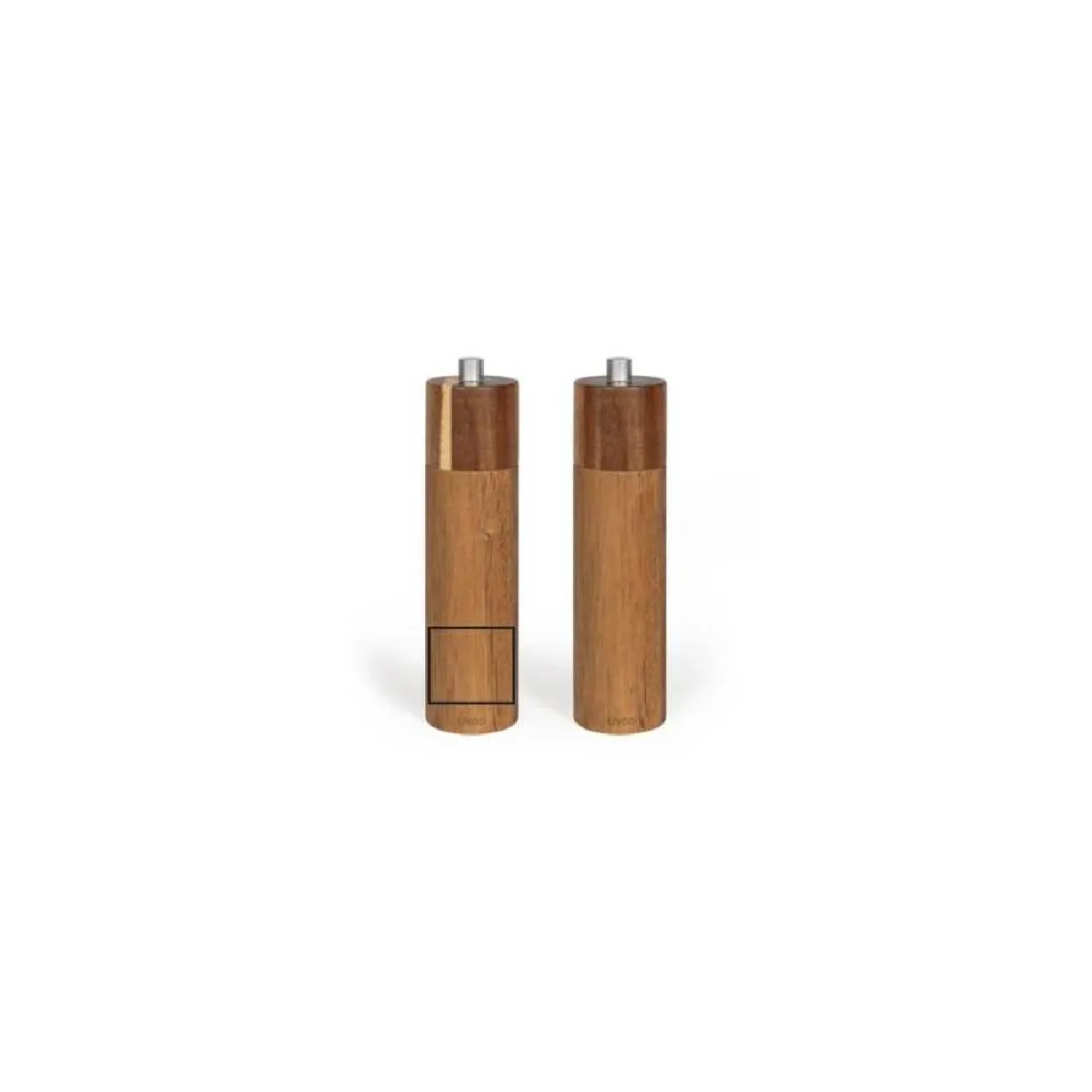 Set de moulins à sel et poivre en acacia, pour ajouter une touche délégance dans la cuisine. Grande capacité de 40 ml et meule en céramique. Utilisation simple grâce à son remplissage facile et son fonctionnement mécanique.