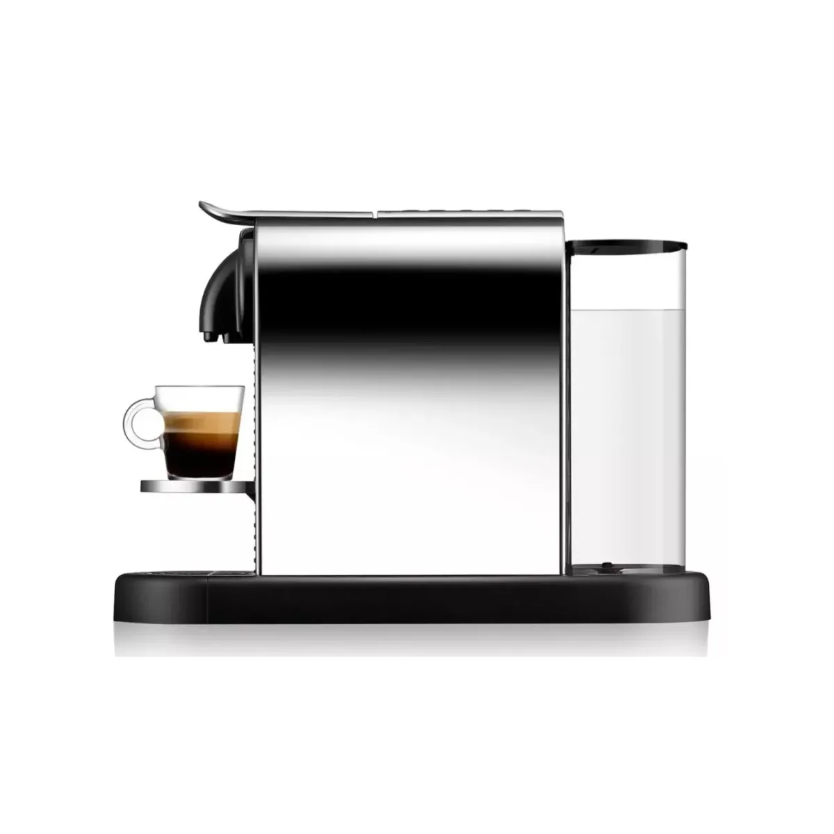 La finition inox s'intègre facilement avec d'autres appareils et résiste bien aux manipulations courantes. Le réservoir d'eau amovible se retire en un clic pour le rinçage, ce qui encourage un entretien régulier et rapide au quotidien. Sans mousseur ni broyeur, l'appareil se concentre sur l'extraction de capsules Nespresso pour limiter les pièces à nettoyer. L'absence d'écran réduit les risques de traces et simplifie l'essuyage de la façade.