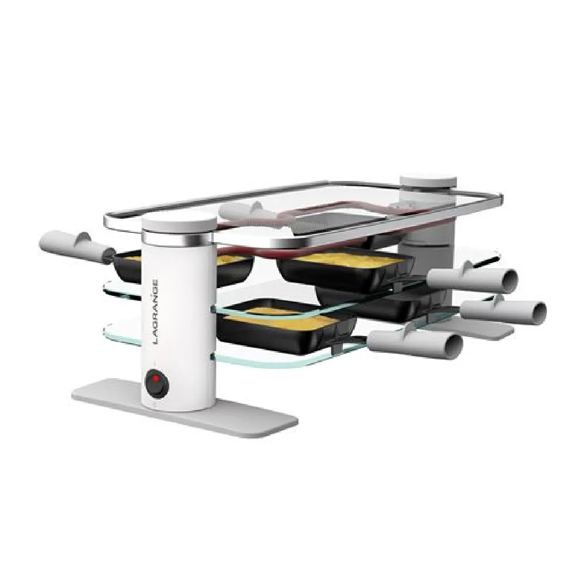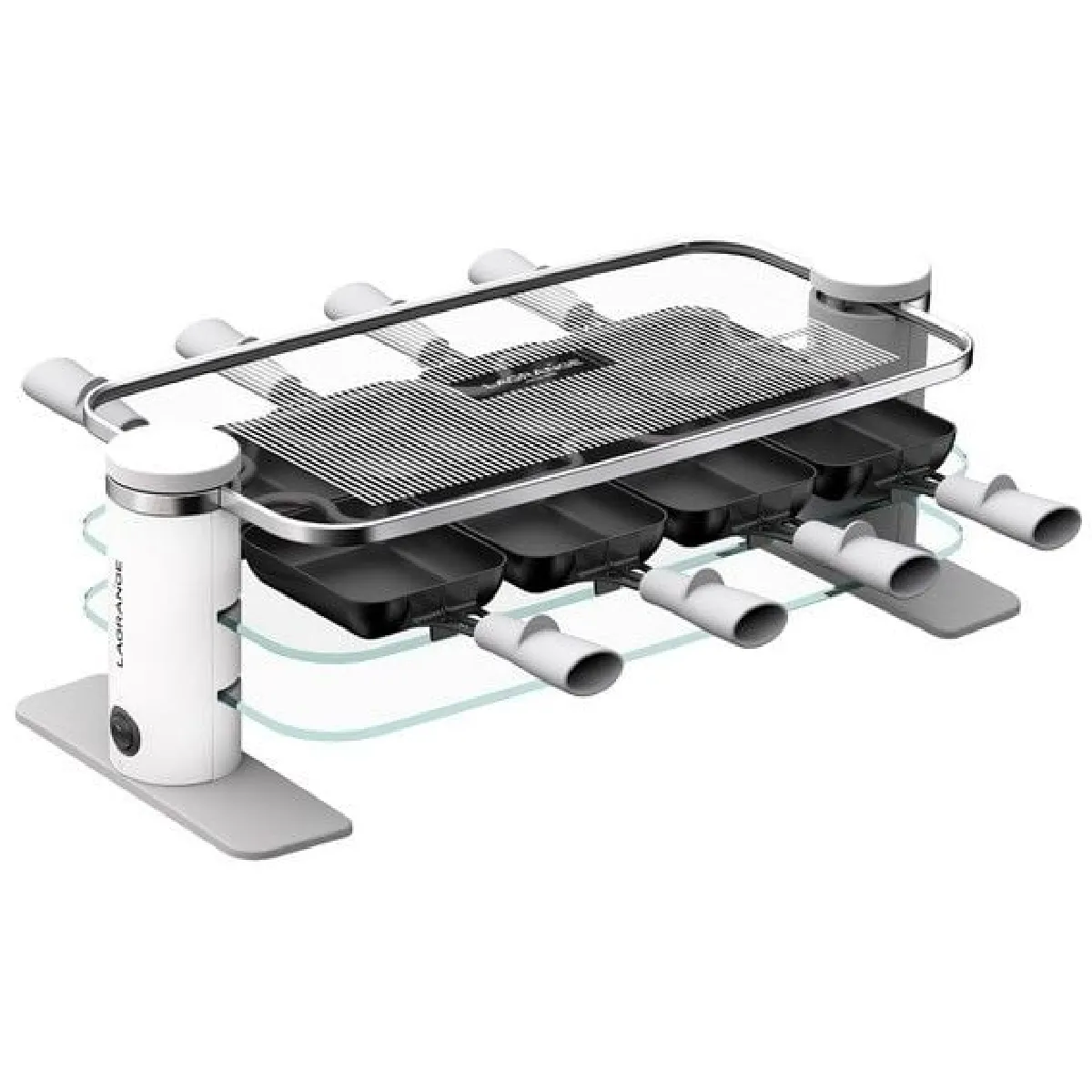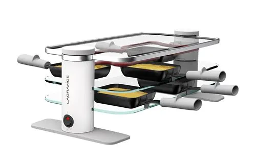 Raclette Transparence 8 personnes 3 plateaux en verre trempé Blanc et Gris Lagrange