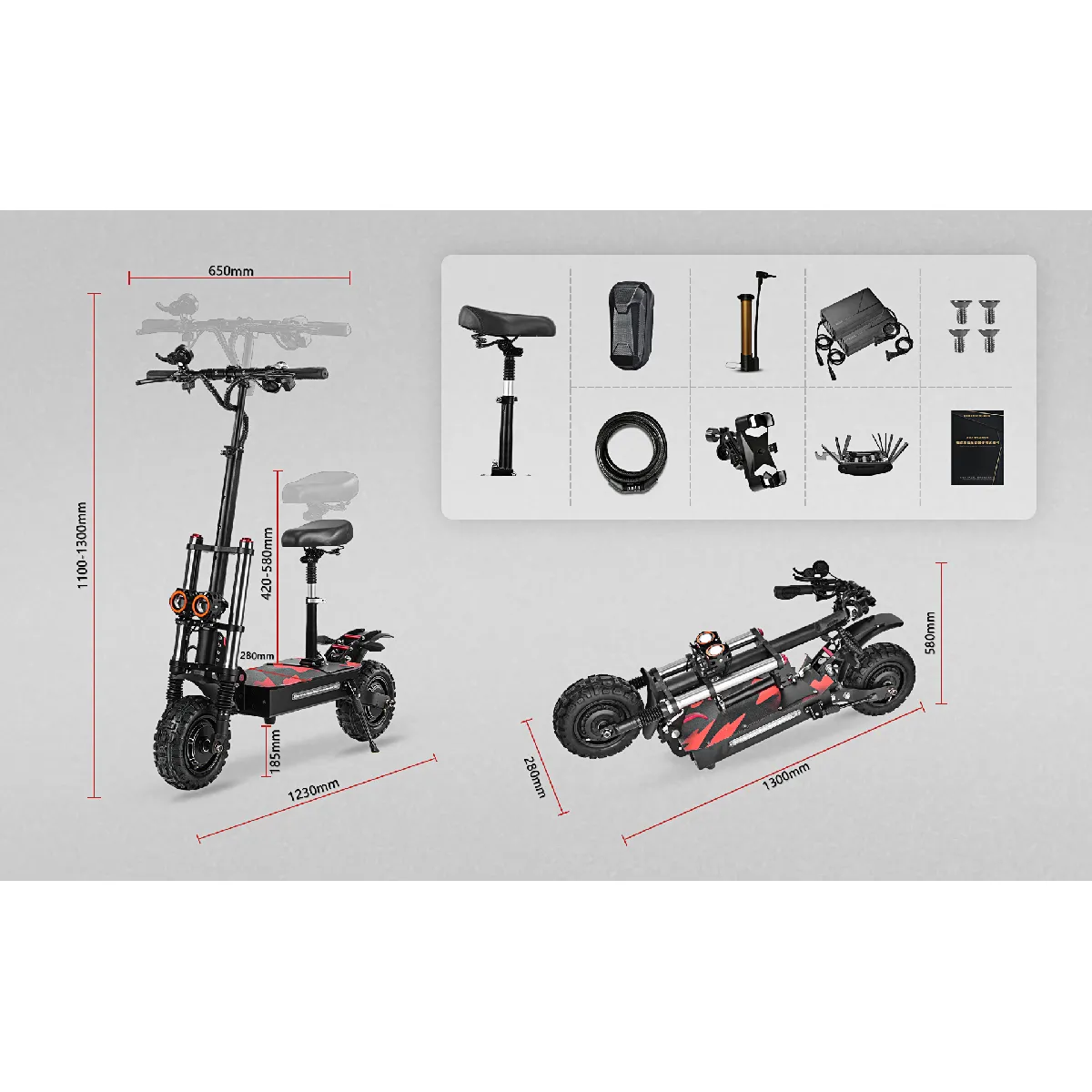 Trottinette Electrique Pliable siège OOED S3- Moteur 6000W(2*3000W) - Batterie 60V 38Ah - pneu tout-terrain 11" - Autonomie 120km |
