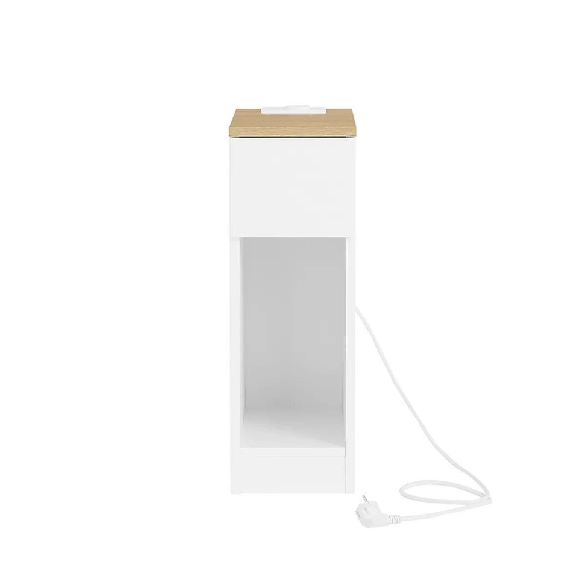 SoBuy Table de Chevet Étroite Blanche avec Chargeur, Prise Standard, USB et Type-C