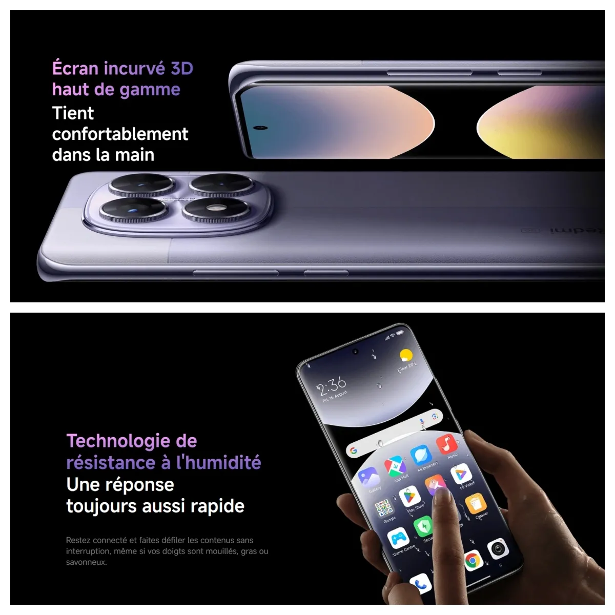 Le processeur MediaTek Dimensity 7300Ultra cadencé à 2,5 GHz s'appuie sur 8 Go de RAM pour une exécution fluide des applications et du multitâche. Les téléchargements et appels profitent de la 5G, et le WiFi assure une connexion stable à la maison ou au bureau. La batterie 5110 mAh accompagne les longues journées, et la charge rapide compatible 10 à 45 W permet une remise à niveau efficace entre deux déplacements. Le lecteur d'empreintes digitales et la reconnaissance faciale facilitent un accès sécurisé.