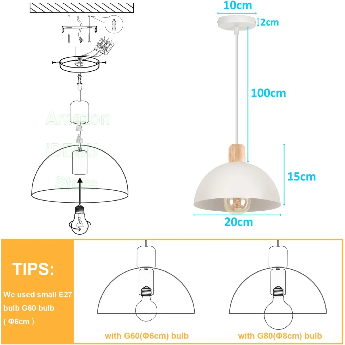 2PCS 20CM Lustre En Métal Vintage Suspension Luminaire Moderne Lampe À Suspension D'Intérieur Simple E27, Blanc Pour Restaurant Cuisine