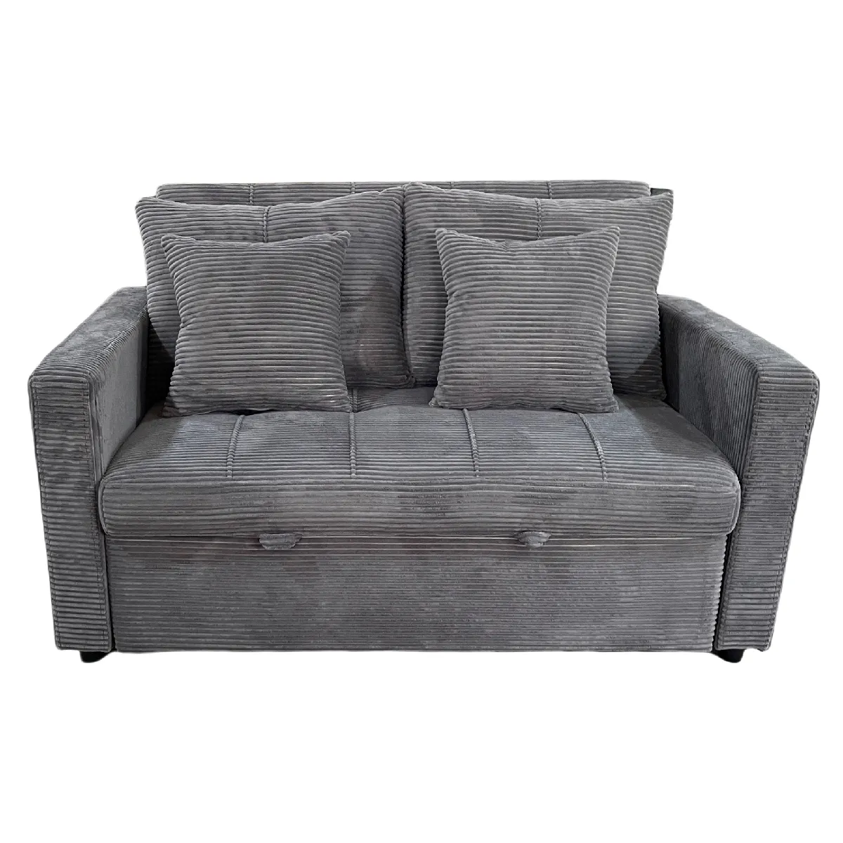 Pegane Canapé-lit, canapé 2 places convertible en velours côtelé coloris gris - Longueur 140 x Largeur 99 x Hauteur 88 cm |