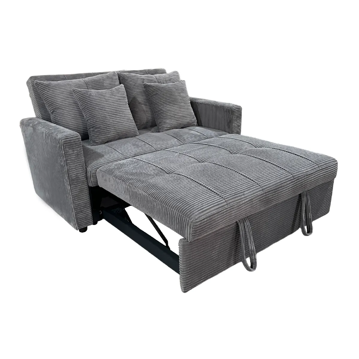 Pegane Canapé-lit, canapé 2 places convertible en velours côtelé coloris gris - Longueur 140 x Largeur 99 x Hauteur 88 cm
