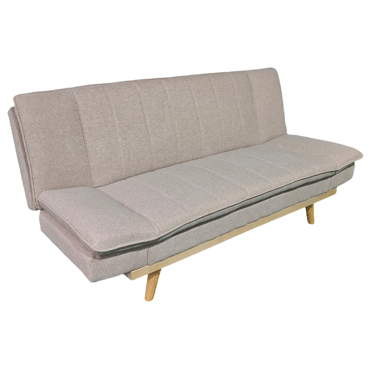 Canapé transformable en lit d'appoint de 114cm ,rembourré en Tissu beige avec mécanisme clic-clac et ouverture de type livre. Accoudoirs inclinables et réglables en hauteur. Coutures décoratives lignes verticales.
