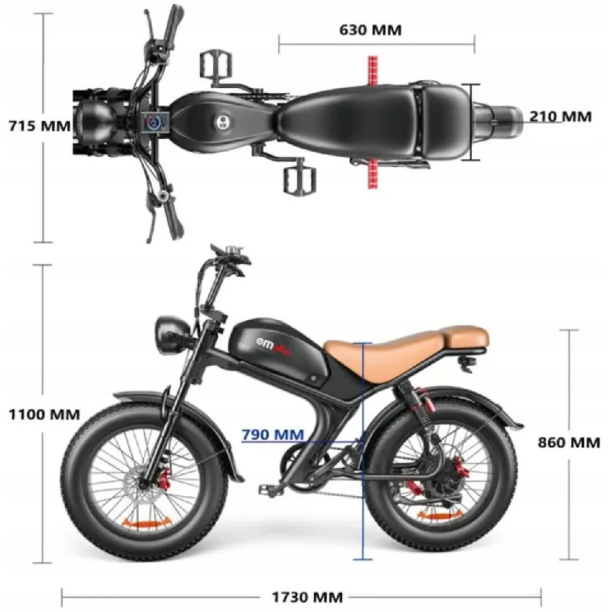 Commentaire vendeur : Découvrez l’EMOKO C93, la bicyclette électrique vintage qui allie élégance et performance ! Son design rétro séduit, tandis que le moteur sans balais 48V 1000W (pic 1500W) atteint 55 km/h, dominait pentes facilement. La batterie lithium amovible 48V 20Ah offre 50 km en mode électrique pur et 80 km en assistance, rechargeable de deux manières. Pneus épaisses 20""×4"" s’adaptent à gravier, neige, etc. Freins à disque et double suspension assurent sécurité. Équipée de phare LED 10W, port USB, 5 modes de conduite et 7 vitesses, elle convient à des personnes de 165-195 cm. Parfaite pour s’épanouir en ville ou explorer terrains accidentés – un partenaire polyvalent pour des aventures hors du commun !