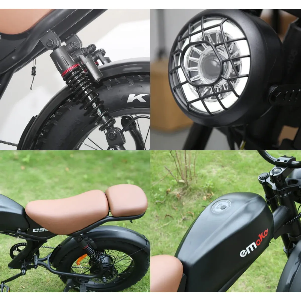 Commentaire vendeur : Avec ses deux moteurs 1000W, le EMOKO C93 offre une puissance exceptionnelle, permettant une vitesse par défaut de 25 km/h (conforme aux réglementations) et pouvant atteindre 50 km/h après déverrouillage, pour une conduite plus dynamique. Sa batterie 48V 23Ah lui confère une autonomie impressionnante de 100 km, idéale pour les trajets quotidiens comme pour les explorations hors des sentiers battus. Équipé de pneus larges 20""x4,0, il assure une stabilité optimale sur route et tout-terrain, tandis que son design pliable en fait un compagnon pratique et compact. L’écran LCD moderne affiche en temps réel les données essentielles et renforce son look rétro-techno, alliant esthétique et fonctionnalité. Que vous cherchiez un vélo urbain performant ou un partenaire d’aventure, le EMOKO C93 allie performance, autonomie et polyvalence sans compromis. Puissance, liberté, mobilité – EMOKO C93, pour ceux qui repoussent les limites.
