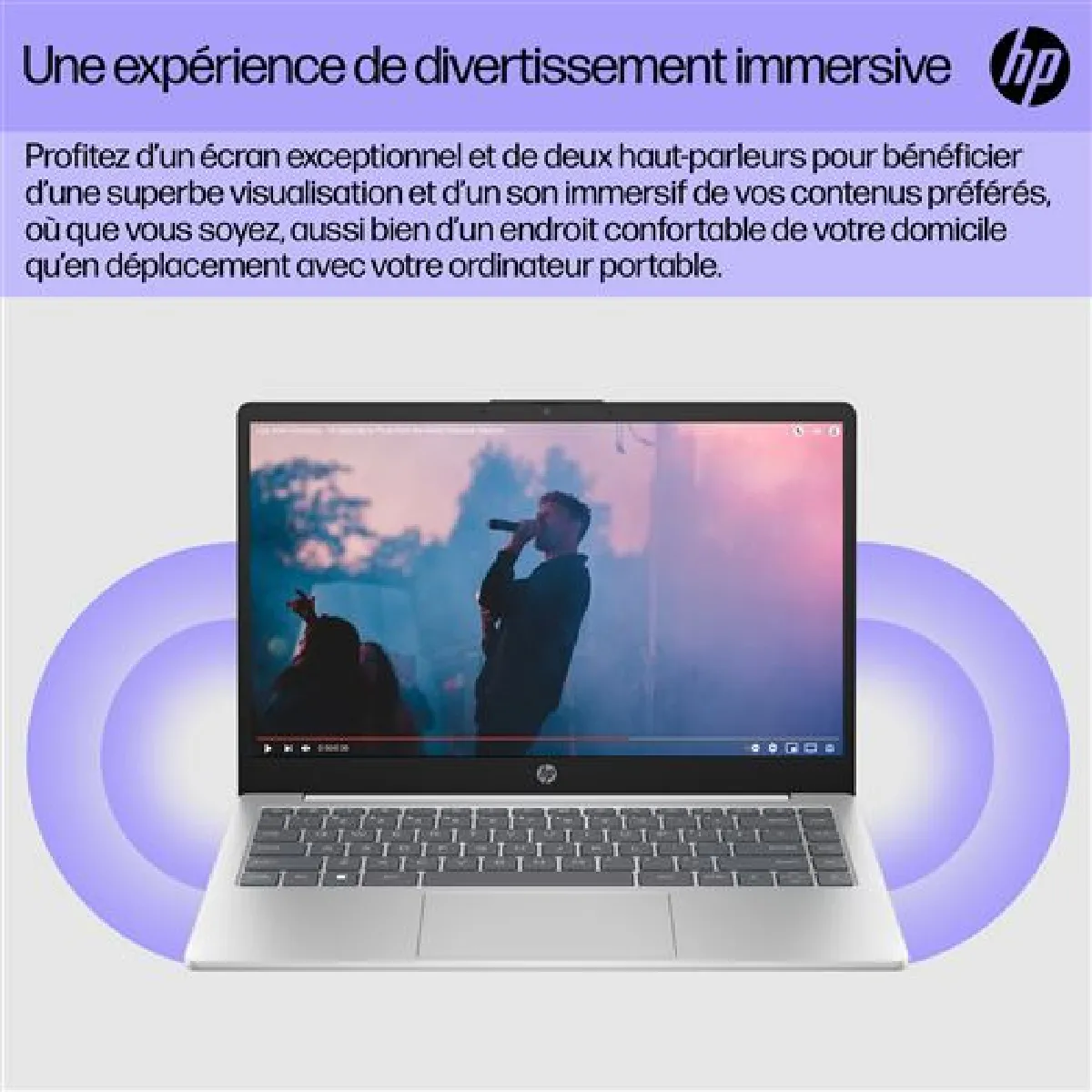 L'écran IPS 14" Full HD (1920 x 1080) présente des micro-bords avec traitement antireflet pour un confort dans les environnements lumineux. La dalle 300 nits et la couverture 62,5 % sRGB conviennent à la bureautique, aux cours en ligne et aux contenus web. La webcam et les deux hautparleurs stéréo assurent des échanges clairs, soutenus par deux microphones avec réduction de bruit. Le clavier AZERTY sans rétroéclairage offre une frappe classique et un pavé tactile précis pour la navigation quotidienne.