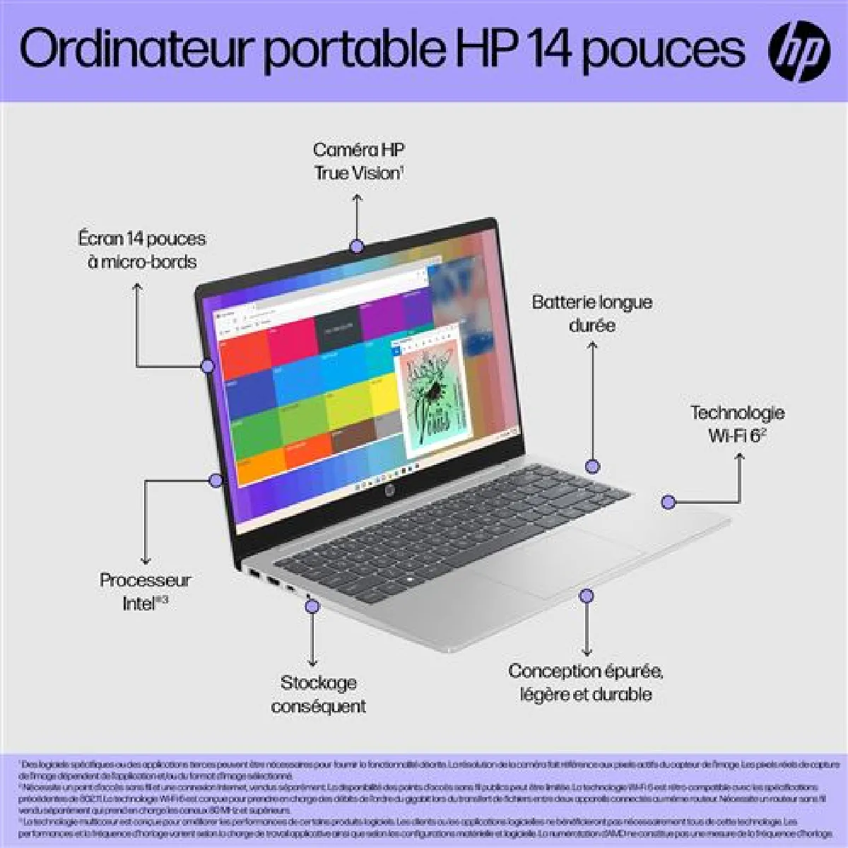 Sous Windows 11 Home, l'organisation des bureaux virtuels et l'ancrage des fenêtres optimisent la productivité. Les utilitaires HP préinstallés aident à la configuration et à l'optimisation. Avec la charge rapide et l'autonomie annoncée jusqu'à 9 heures, les sessions de travail restent possibles loin d'une prise. La batterie Liion polymère 3 cellules 41 Wh, non amovible, assure un compromis entre endurance et finesse. Le châssis de 1,79 cm à l'avant se glisse facilement dans un sac, et le poids contenu de 1,41 kg limite la fatigue lors des déplacements.